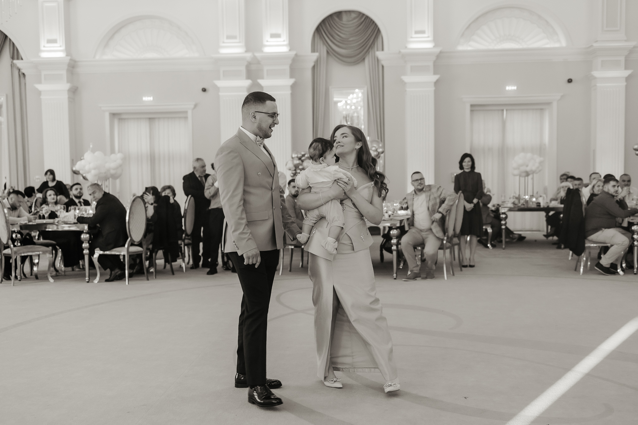 Palazzo Events provided the perfect setting for the party. One of Timișoara’s most elegant venues, it carries a refined atmosphere through every detail — from the interior décor to the exterior spaces, both of which we used for the photo session. Inside, the warm lighting and considered design offer a classic backdrop. Outside, the architecture and surrounding space add variety and openness. We moved between both throughout the day, and the album is richer for it.