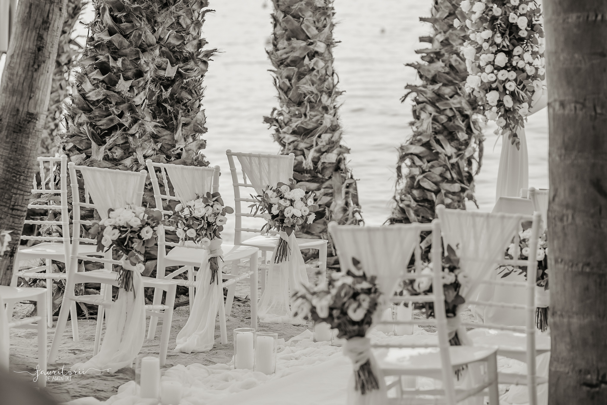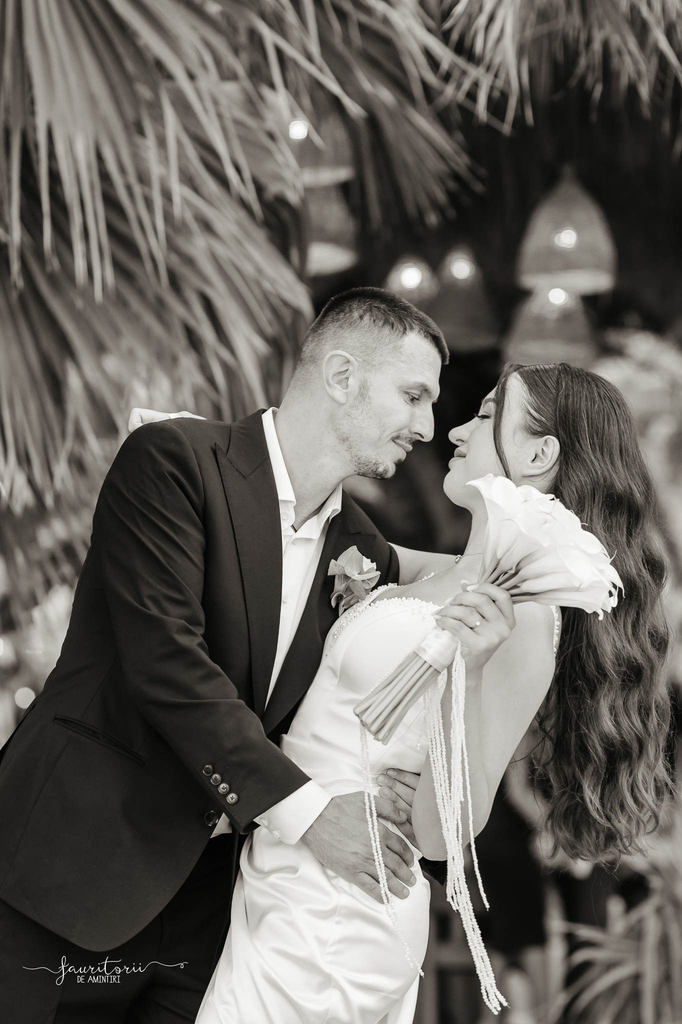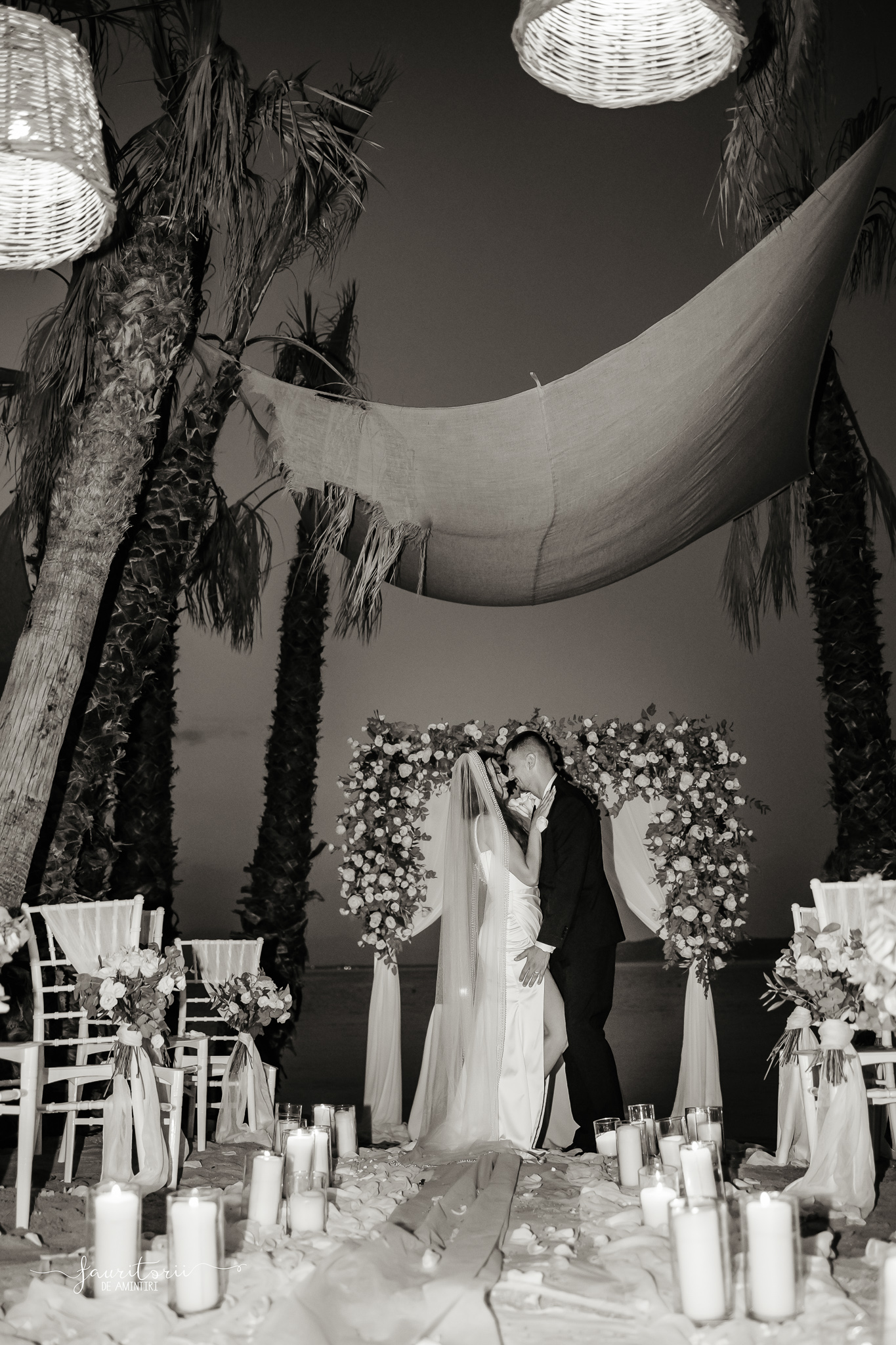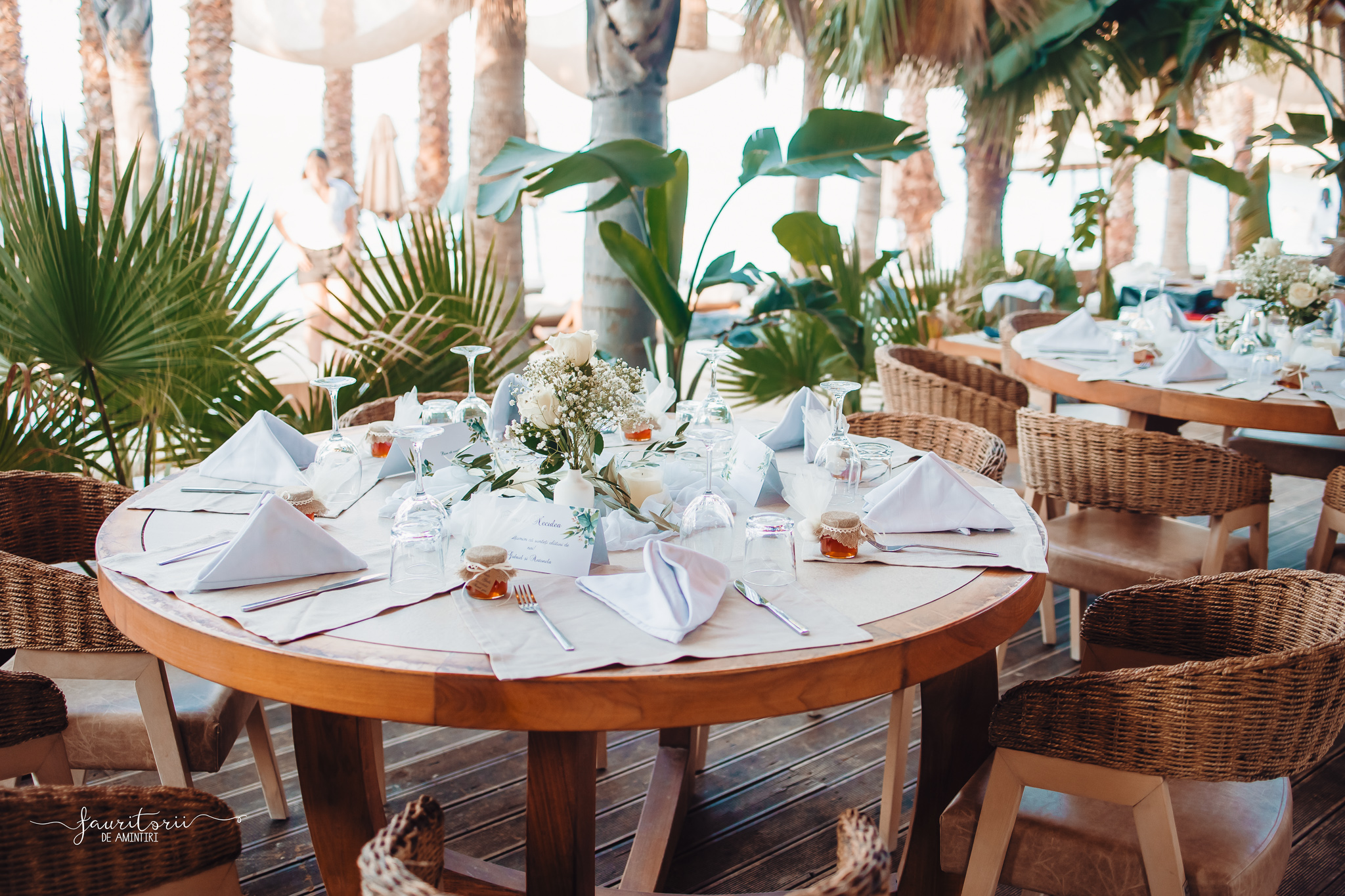 Some weddings are perfectly in tune with their setting — and this late August celebration on the island of Thassos was exactly that. A Romanian couple, roughly 100 guests, the warm end-of-summer light of the northern Aegean, and a ceremony held among palm trees on the edge of the sea. Everything felt inevitable, in the best possible way.