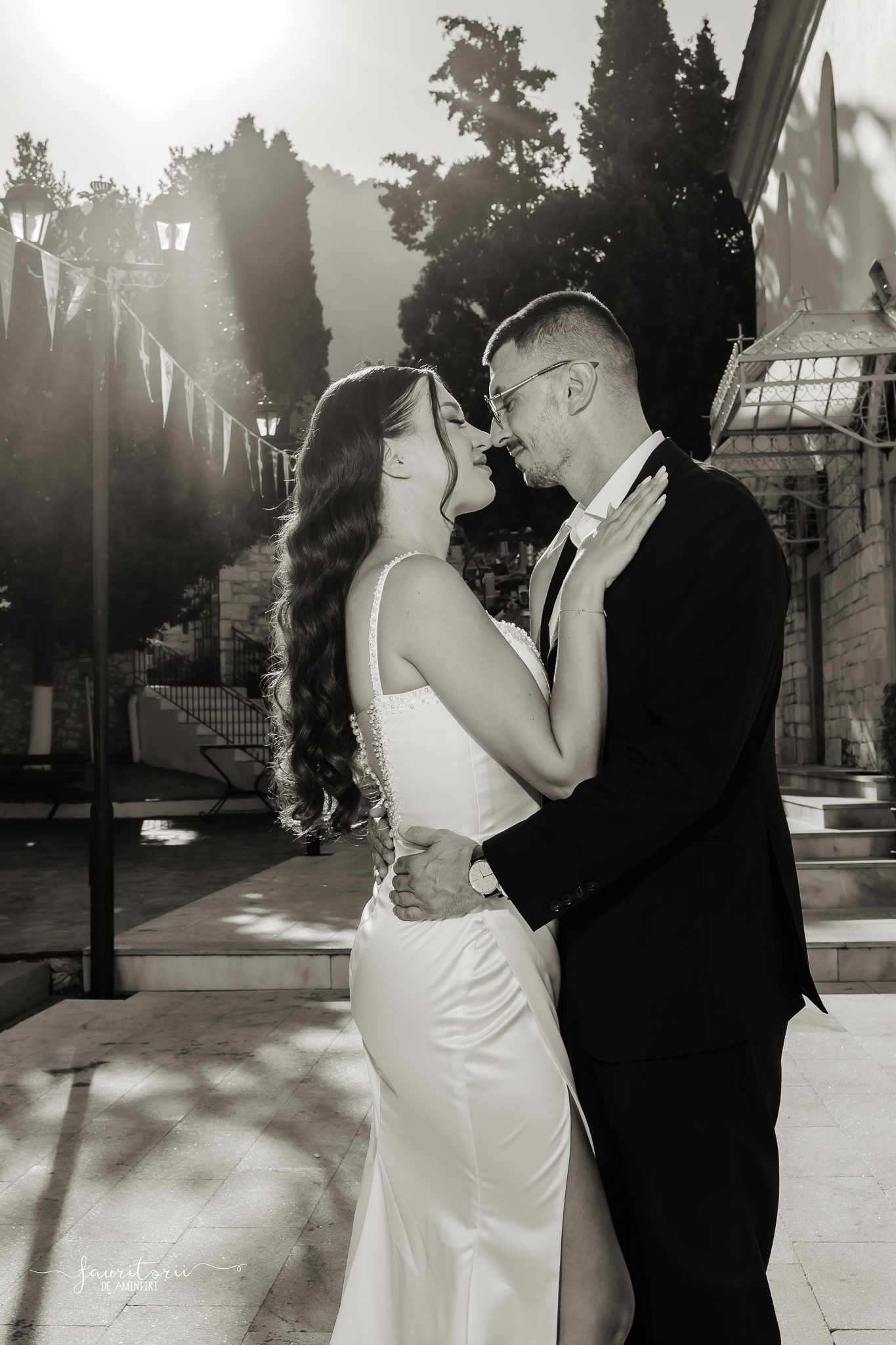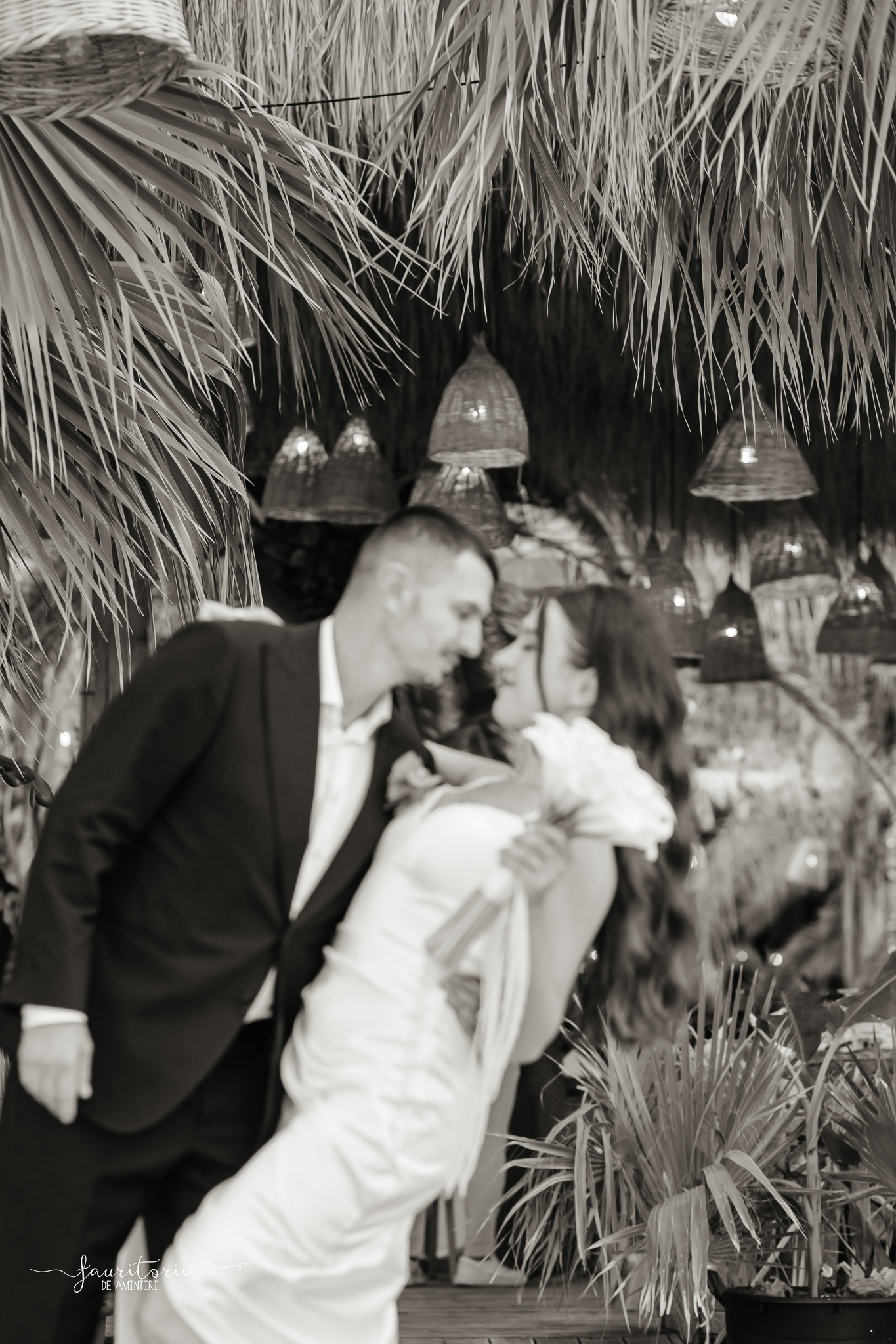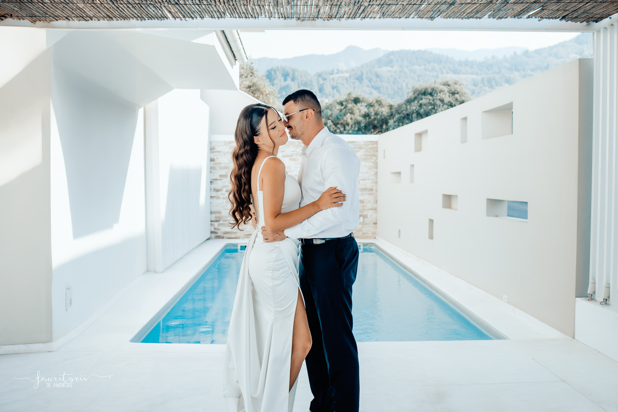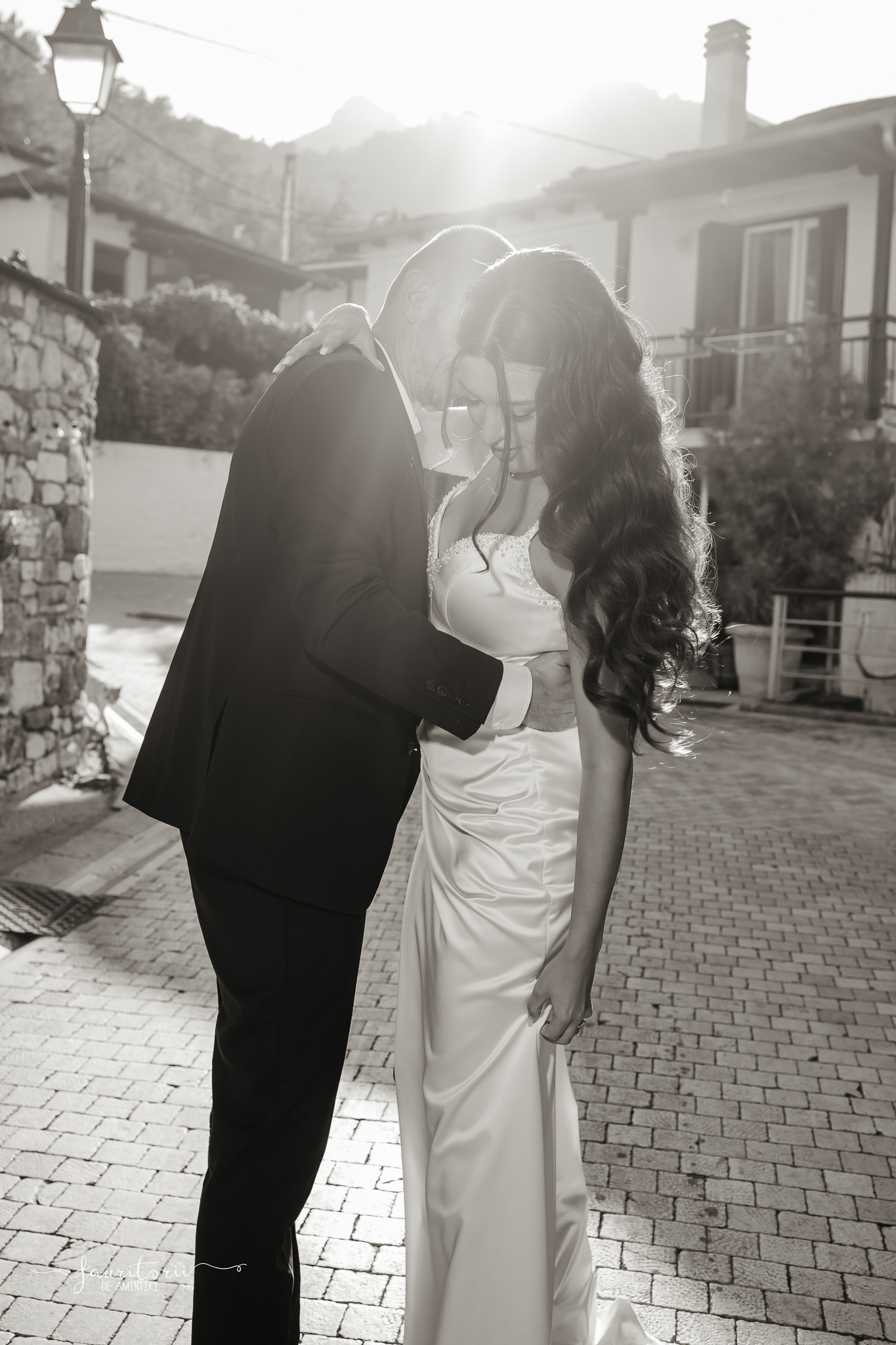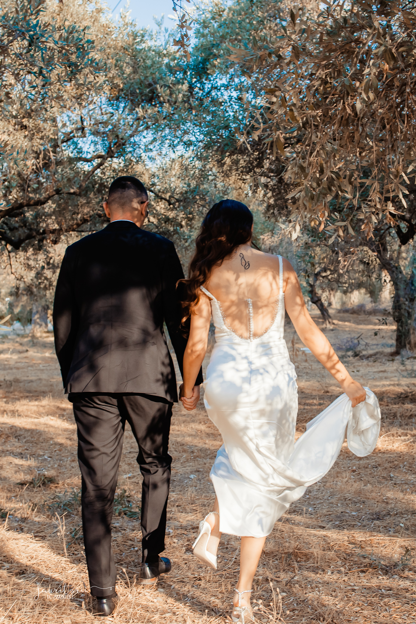 Some weddings are perfectly in tune with their setting — and this late August celebration on the island of Thassos was exactly that. A Romanian couple, roughly 100 guests, the warm end-of-summer light of the northern Aegean, and a ceremony held among palm trees on the edge of the sea. Everything felt inevitable, in the best possible way.