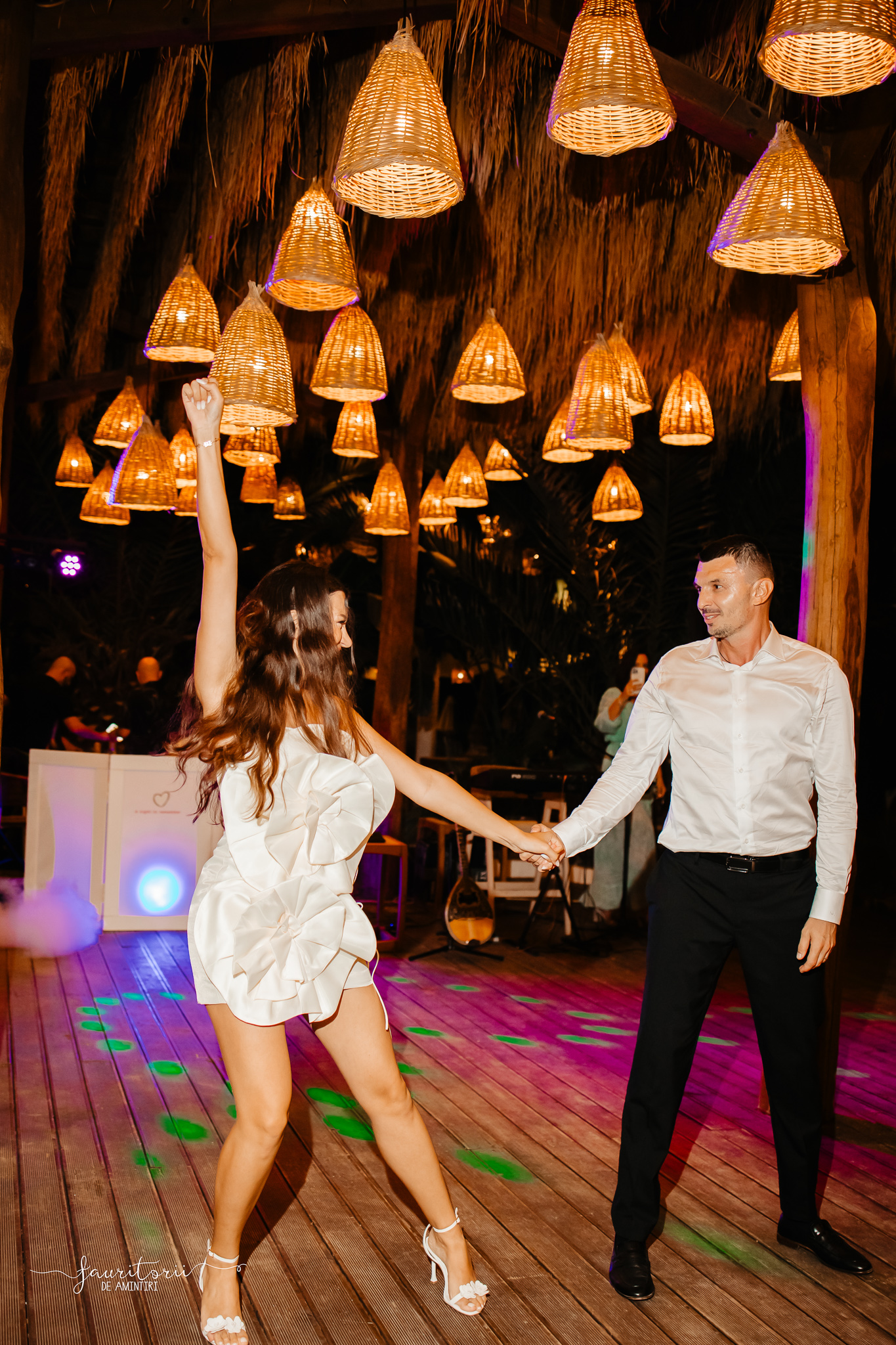 And then the party began — and it did not stop until morning. A true Romanian celebration, transported to a Greek island and fully at home there: dancing on the beach, music under the stars, waves in the background. One hundred people who clearly knew how to celebrate love properly.
